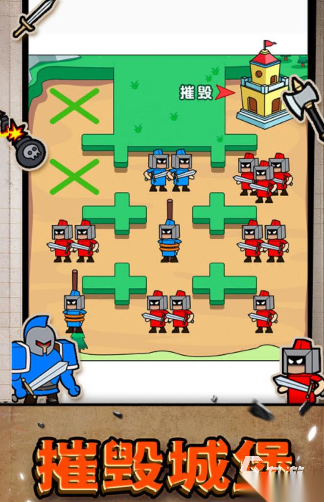 骑士和王子的故事或许是让人觉得浪漫的。在这款《疯狂小兵》的游戏里,玩家在游戏里扮演着骑士的角色,需要不断的合成去得到高级的将领,去拯救你的公主。同时,小兵也需要不断的去升级自己,去强化自身,攻打关卡中的怪兽。每一关的结尾都是有着奖励和宝藏。在这里,你将是最为强大的骑士,守护着公主也作为国家的强大勇士。