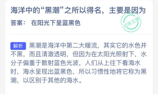 海洋中的“黑潮”之所以得名,主要是因为?【神奇海洋】2026年1月6日新题目已开答!正确答案现已公布,点击领取拼图,一起为修复海洋生态贡献力量!今日正确答案是:【在阳光下呈蓝黑色】。海洋中的“黑潮”之所以得名,主要是因为在阳光下呈蓝黑色。