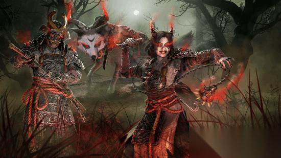 角色装备:包含弥助与奈绪江完整的护甲套装,设计上突出了隐秘与致命的主题,兼具东瀛美学与实用性。