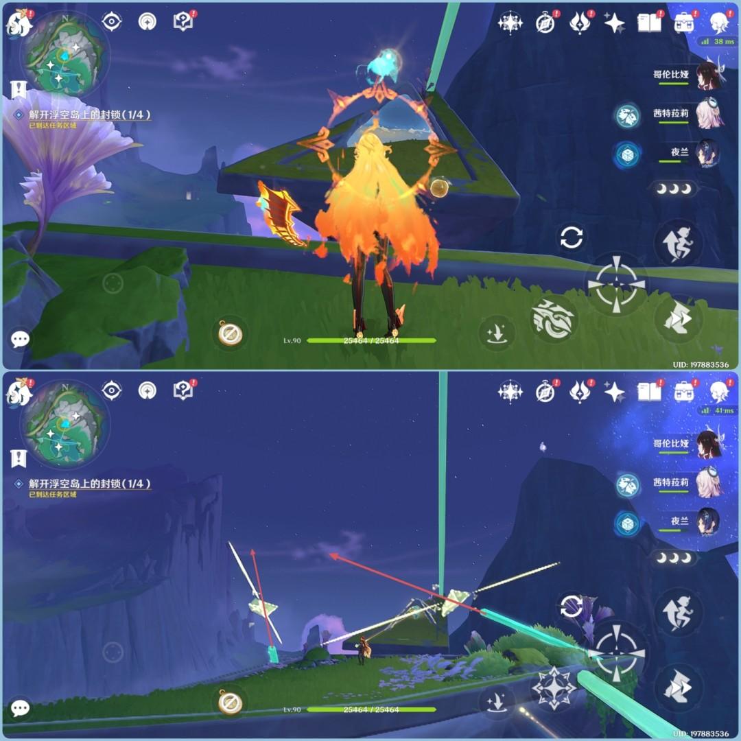 4.到达浮空岛,操控璇珑花旋转棱晶是指与图标重合平行,完成后获得精致宝箱*1