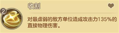 主动技能可以使用“收割”,CD短的同时,会锁定对方最虚弱的英雄释放,更容易触发秋霜自身的专属被动,打出追击收割效果。