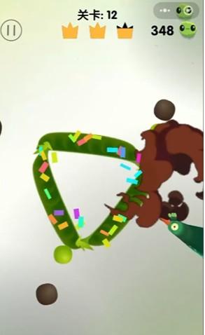 1、这一关的豌豆荚增加一条,变成了三角形,小心避开黑豆快速啄掉青豆。