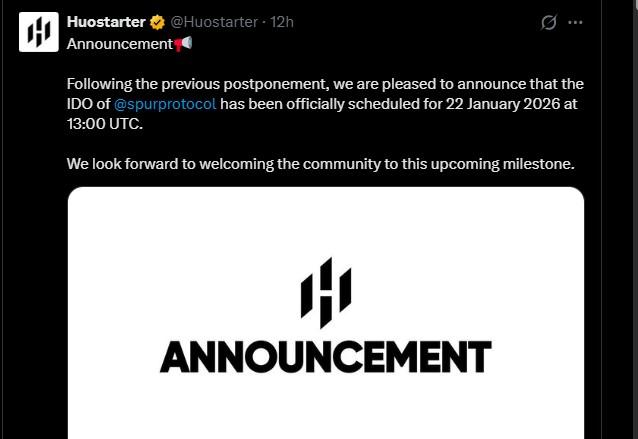 Huostarter 是一个领先的区块链发行平台,以结构化的代币发行而闻名。该公司确认,IDO 现已确定于 2026 年 1 月 22 日举行。此前,IDO 曾因延期而给市场带来不确定性。