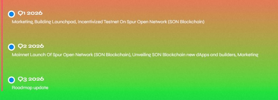 根据SpurSwap 官方网站该项目的预售仍在进行中,将于四天后结束。这意味着预售将于2026年1月25日结束,恰好在即将到来的$SON上市日期前一天。