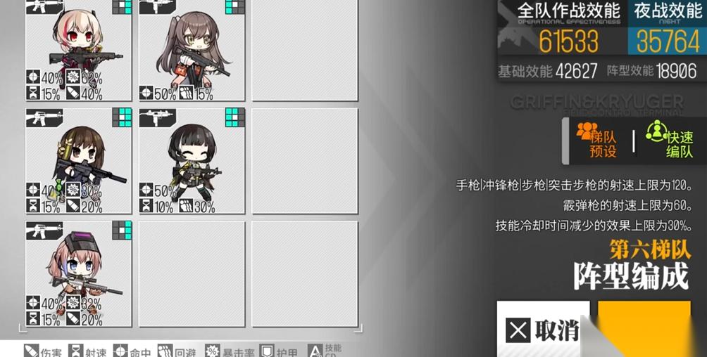 AR队中的输出人形选择需要兼顾不同类型的技能特性,理想的搭配是包含一个火力专精型、一个攻速型和一个榴弹型AR,这样的组合可以灵活应对各种战斗环境。火力专精AR适合对抗高血量单位,攻速型AR擅长清理无甲兵海,而榴弹AR则能对范围敌人造成有效打击,在面对夜战或装甲环境时尤其重要。