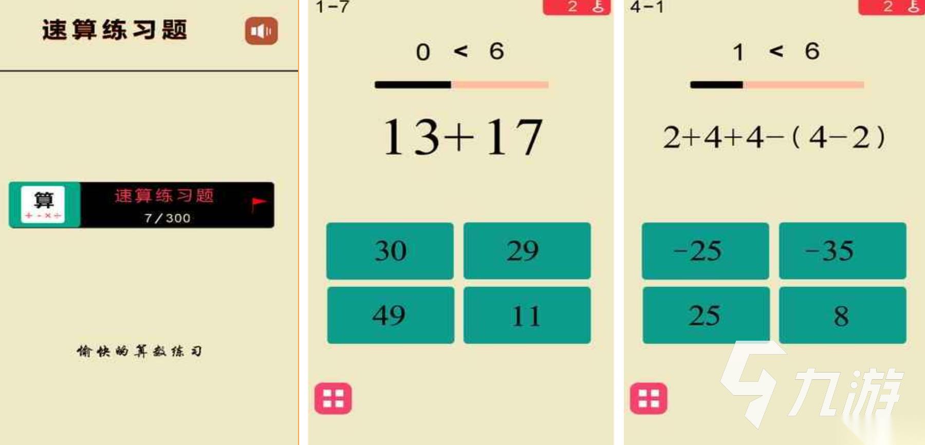 《速算练习题》准备了超多有着高强度的数学心算和瞬时反应的练习题,玩家进入游戏之后会遇到接踵而至的加减乘除算式,必须在极短的时间内给出正确的答案。模拟心算比赛的形式,能有效地锻炼玩家集中注意力的能力以及大脑运算的速度。游戏设置了闯关模式、无尽模式,玩家可以依据自己的实际情况选择难易程度,从而达到循序渐进自我突破的目的。还有超多可以解锁时间冻结器和自动纠错机会等各种计算道具,增加了游戏的趣味性。
