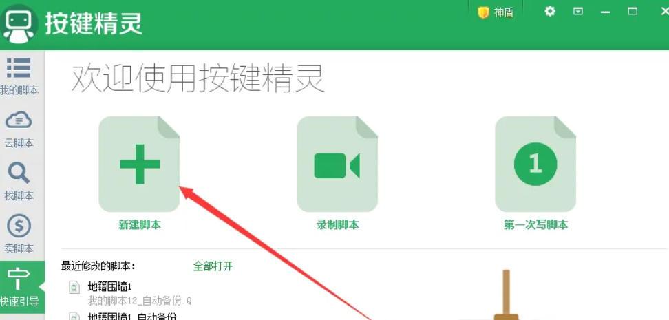点击界面左上角或指定位置的 「新建脚本」 图标(通常为箭头标注的按钮),创建一个空白脚本。