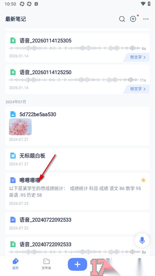 1.当我们进入到有道云笔记app这款软件之后,你可以在打开的首页面上选择需要设置的笔记内容点击打开。