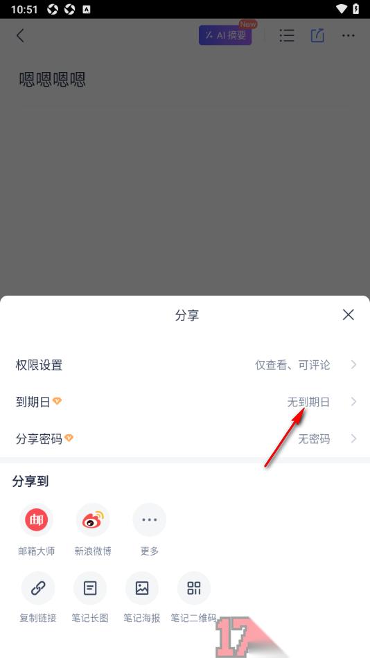 有道云笔记手机版设置笔记分享密码和到期日的方法