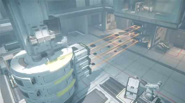 随后把这几个箱子压住场地中央的3个踏板(注意开闸门的这个踏板不是其中之一),完成第一阶段解谜。
