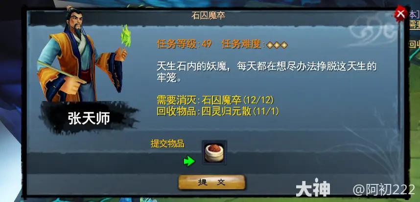 2级怪任务:(寐妖、力妖 ):杀12只,并提交2个道具,奖励随机蓝色耳环,每天各3次。