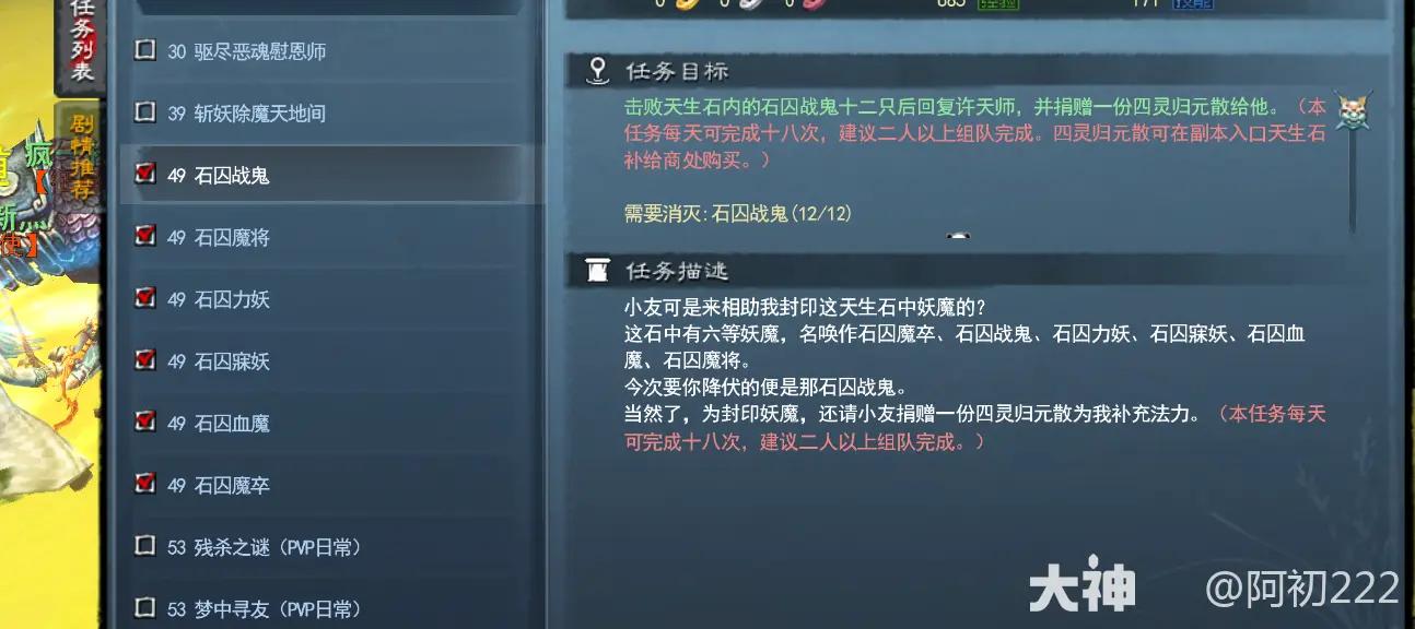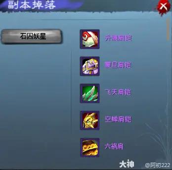 打怪过程中有概率会出现石囚妖星,会出60级世界套肩膀。