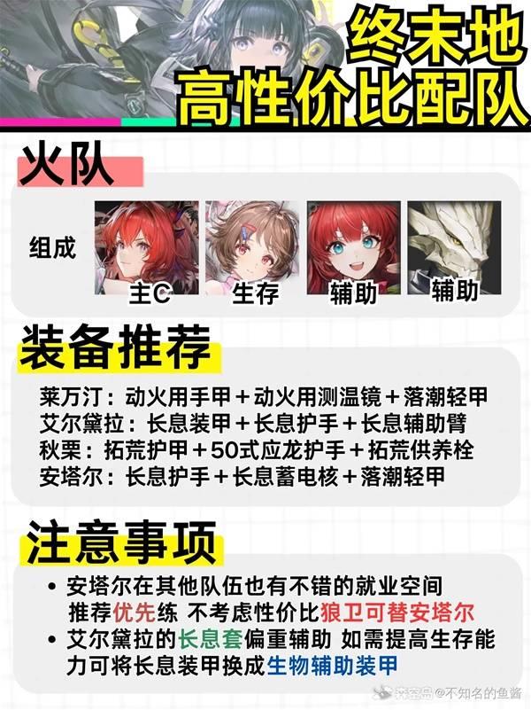 《明日方舟终末地》中有不少玩家不知道应该怎么配队,下面是由“不知名的鱼酱”为大家带来的《明日方舟终末地》低造价配队分享,希望能够帮助到大家。