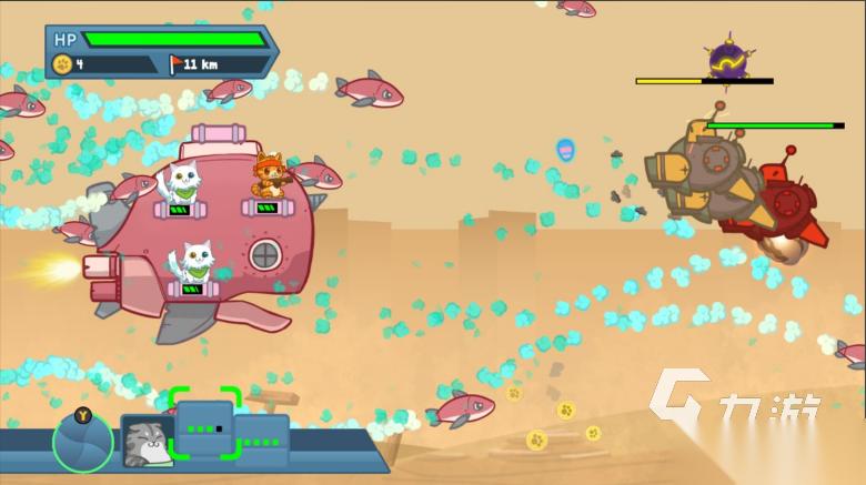 一个跑酷式塔防手游,玩家需要拖动左下角刷新的猫咪到飞船的三个位置上,猫咪会自动攻击来袭的敌人,攻击会消耗体力,体力耗尽后会搭气球离开,需要不断从左侧刷新的候选猫中替换,飞船生命值归零时游戏失败,三只同种类猫咪在飞船上时能触发连击。游戏有数十种猫咪,分攻击、修复和辅助三类,靠扭蛋机获取,猫咪和飞船都可以进行升级强化。