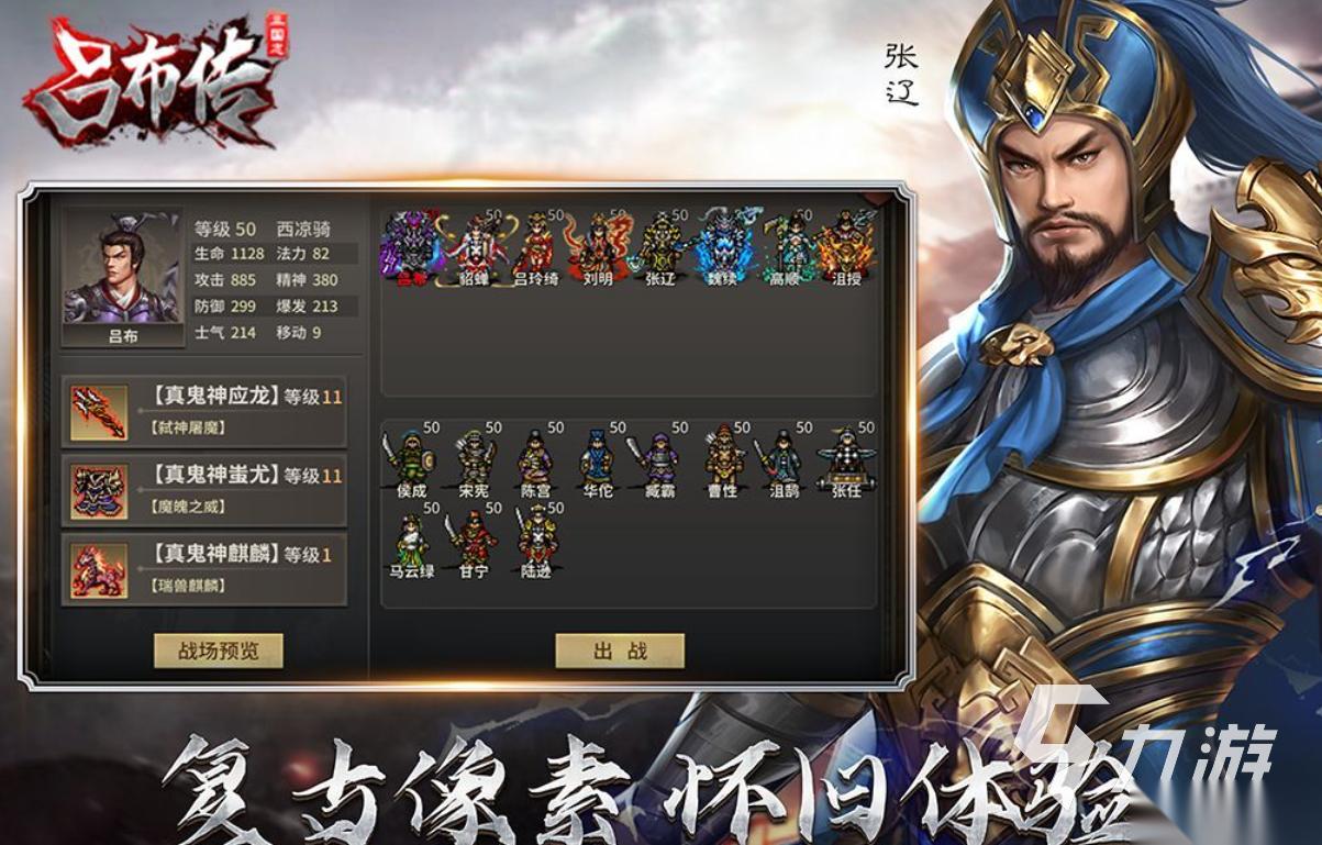 这款战棋类手游包含着众多历史故事和英雄人物,主角是三国时代猛将吕布可以随意强化参与战棋对抗,步步为营的策略战棋玩法玩起来刺激性拉满,运筹帷幄参与战棋博弈的过程也较为烧脑,浓郁的历史气氛扑面而来让大家了解更多古代事件,一如既往的像素风格战场背景也有着一定的怀旧元素。