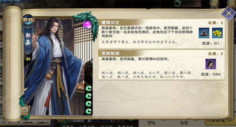 每个武将都有特定的成就任务,完成后可获得名望、士兵、形象等奖励。