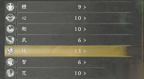心:影响体力、精力和精力恢复速度,同时关联太刀、双刀、长枪、忍双刀、手甲以及远程武器的攻击力