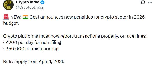 印度政府采取了迄今为止最严厉的措施,惩罚那些不遵守加密货币监管规定的实体。根据……联邦预算2026-27 年,印度加密货币处罚 2026 年建立了一个明确的每日处罚制度,用于处罚与加密货币相关的报告失误,标志着从宽松执行的披露规范到严格的法定问责制的决定性转变。