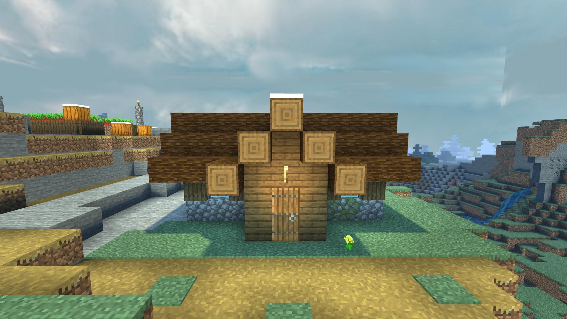 最后把平台装饰一下,小伙伴只需要站在平台上,轻轻一跳就可以跳到山顶上,再也不用担心藏宝室会被发现了!