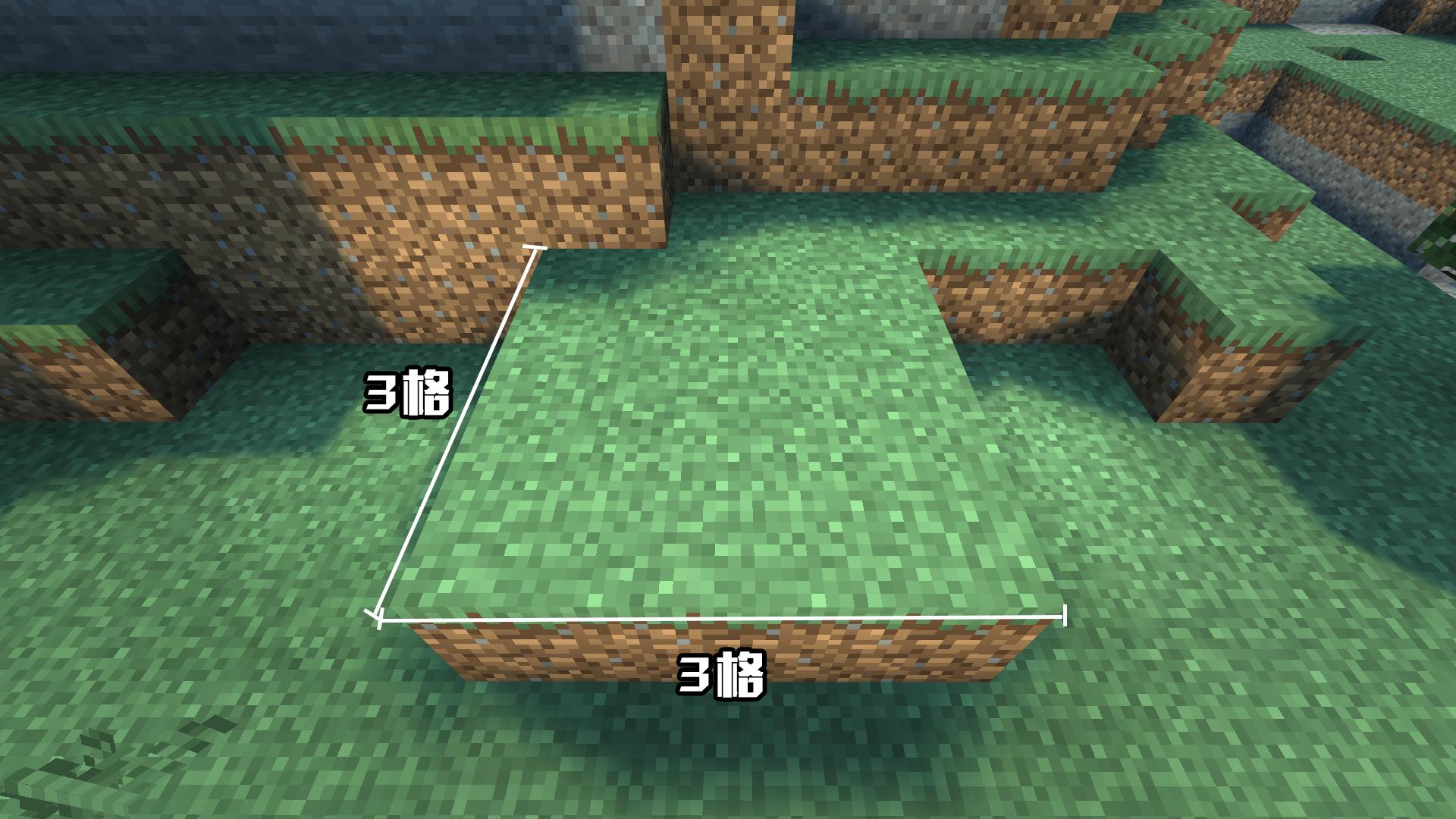 首先在山底下摆放一个3×3的平台,为了不让小偷发现上去的方法,我们使用草方块来制作平台