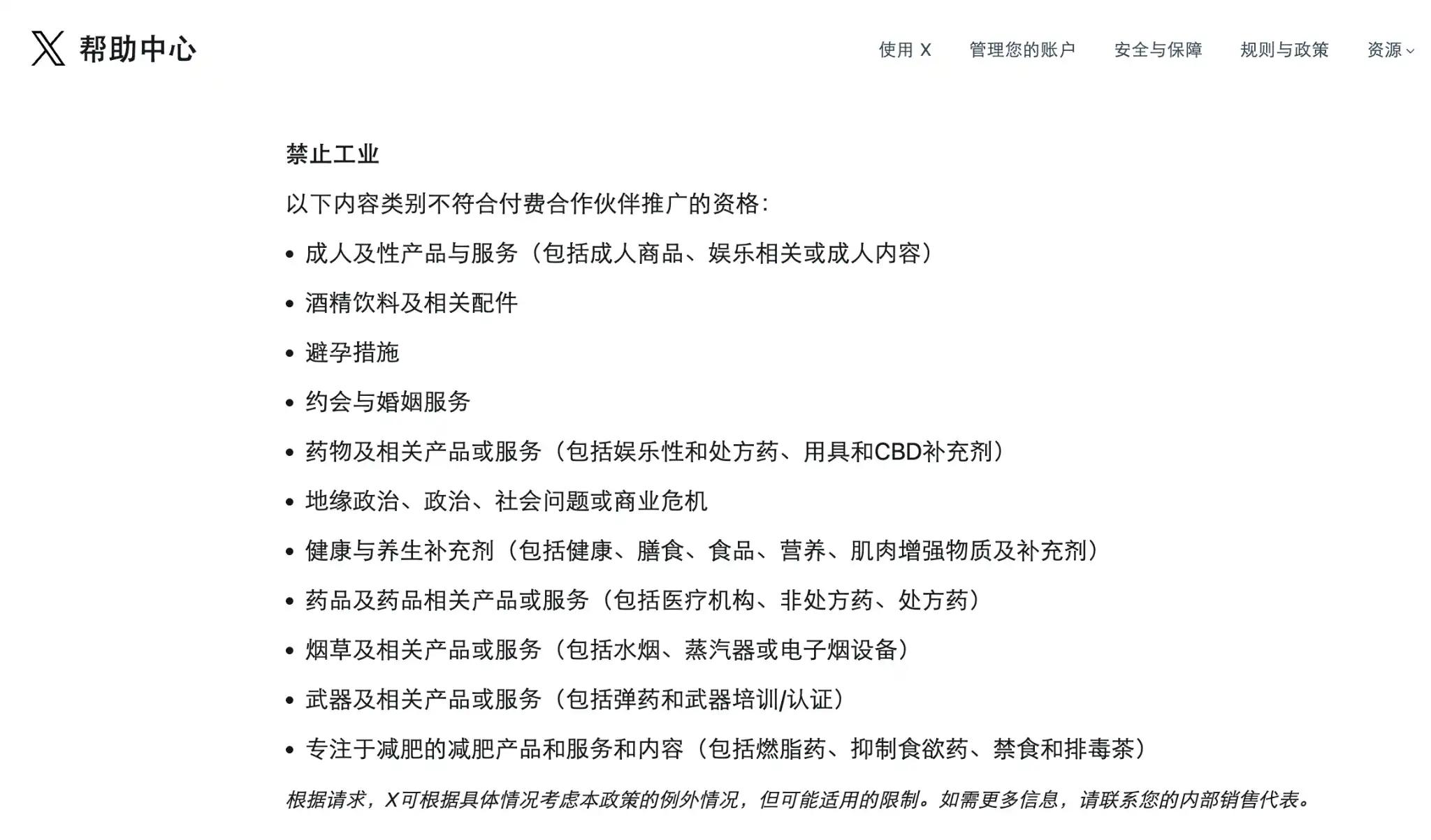就在新规发布之初,X 政策页面显示“加密货币(Crypto)”被直接列为禁止进行付费合作伙伴推广的类别,这在 Web3 圈引发了强烈地震,许多 KOL 辗转反侧夜不能寐,焦虑自己的饭碗被端走了。