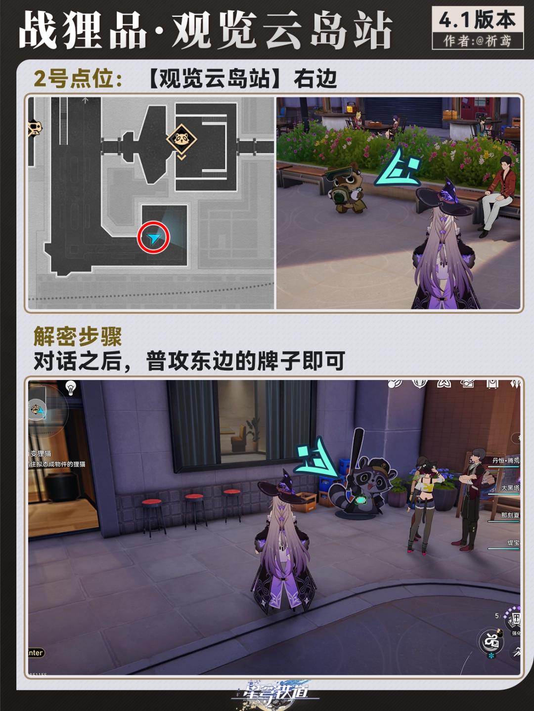 崩坏星穹铁道终于上线了4.1版本[献给破晓的失控],这次版本更新还上线了许多新内容,有新遗器,新地图,新角色,还有许多的解密任务,那么有不少小伙伴好奇观览云岛站战狸品在哪,下面就来告诉大家。