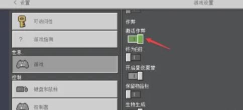 在游戏设置页面中,找到 “作弊” 或 “允许作弊” 选项,并将其设置为 “开启” 或 “是”。