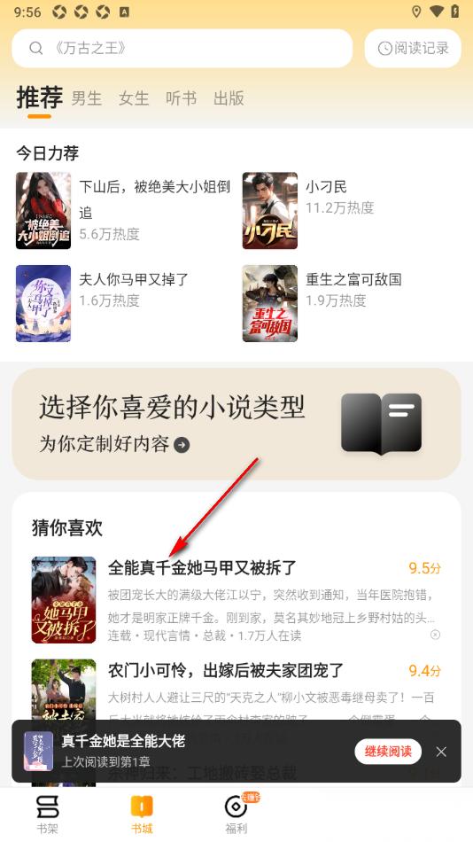 1.当我们进入到郁书坊APP这款软件之后,在页面上找到自己感兴趣的小说,将其点击打开。