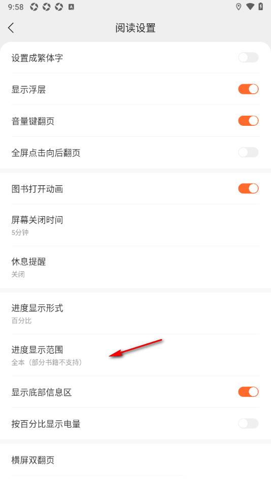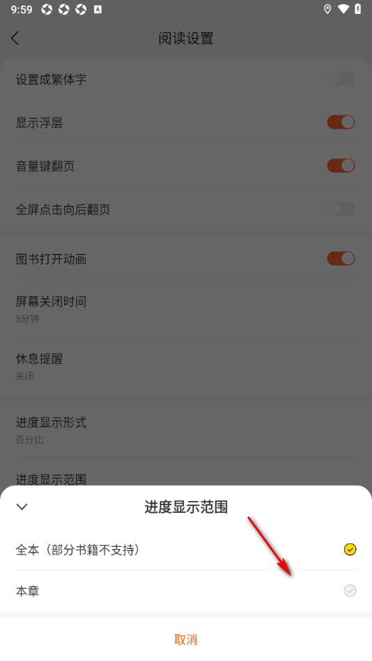 郁书坊APP设置进度显示范围为本章节的方法