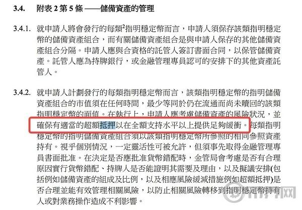 监管指引明确要求,储备资产的市值必须「在任何时间」都至少等于流通中稳定币的面值,同时还要「考虑储备资产的风险状况,确保有适当的超额抵押」。