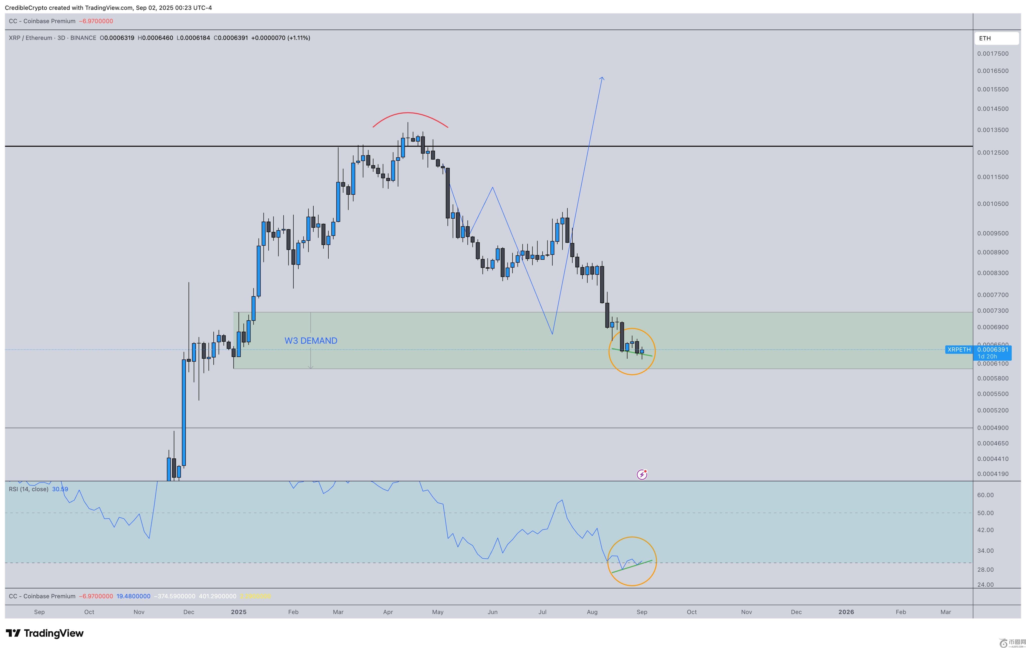 我们已经在 XRP/ETH 货币对上打印了已确认的每日牛市分红,并且目前正在 3D 时间框架上打印一个……在我看来,所描绘的图景非常清晰。”
