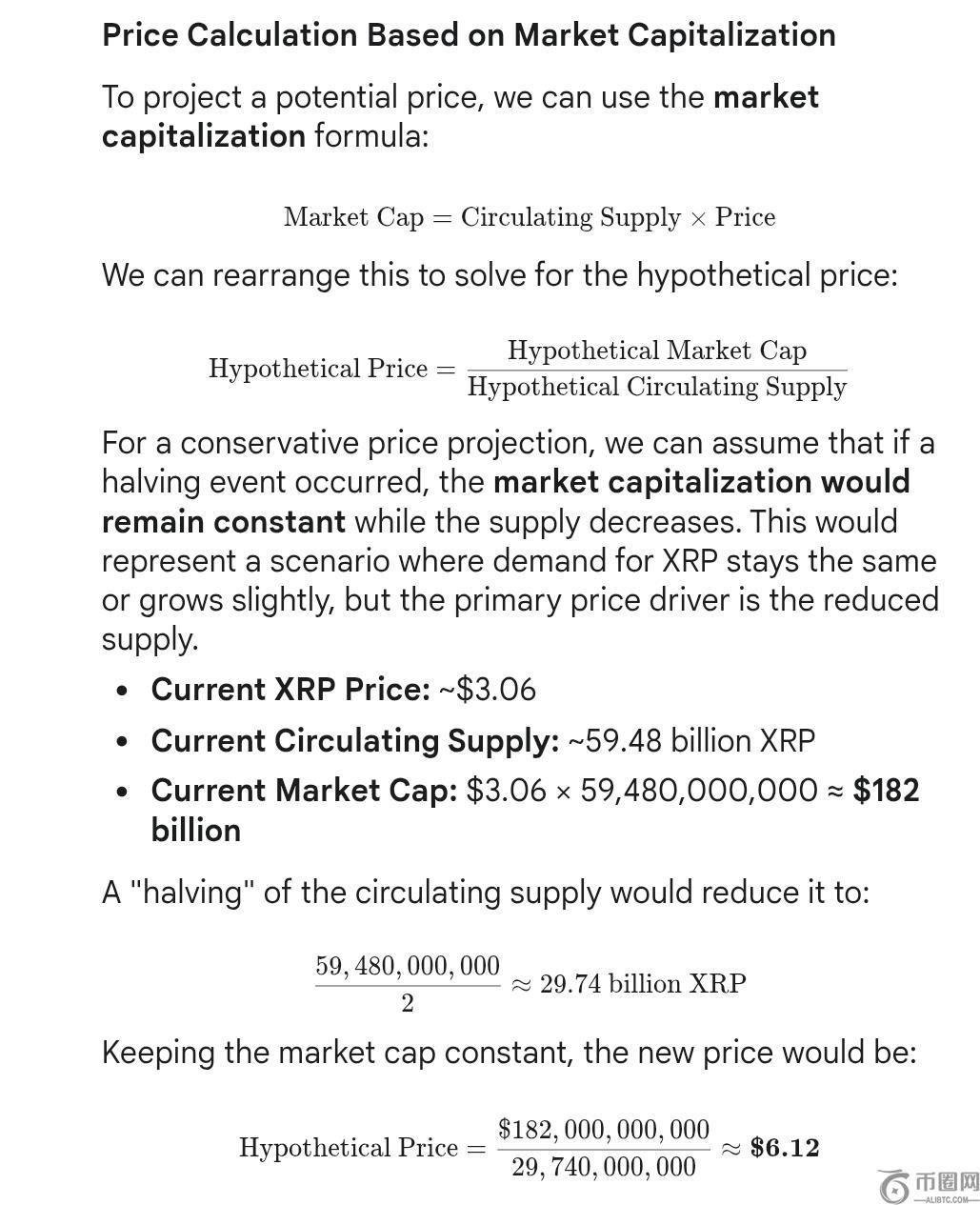 Gemini 在回应中指出,如果 XRP经历了减半切其流通供应量约为 300 亿,而市值留下来同样,价格可能会上涨至关于6.12 美元。