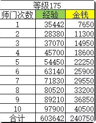 175师门每天20轮给480000现金,并且储备金+现金可达到将近60W。