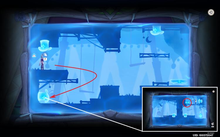 (这是先成图的第二个场景,靠近帽子交互就能解锁隐藏道路,左边的道路能顺便开一个宝箱,右边的就是出去的路)