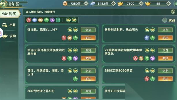 3、反过来,如果你正缺某种强化石或秘籍残页,也不必满世界苦寻,直接在摊位上上架自己所需要的物品,静待有缘人送货上 门,省时又省力