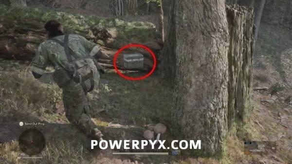 从手榴弹所在位置往右穿过草丛,沿着边缘岩壁走到大树桩后方即可看到。