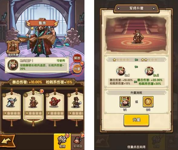 1、重复获取:如果重复获取了军师,可以在军师界面进行升星,升星后可增加更多的暴击伤害和对应兵种伤害加成。