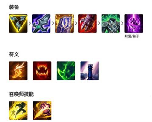 出装思路:三项出完之后优势足够下一件就可以直接出破败,根据实际情况来补充装备,血手、复活甲和死舞任选两件做出来才有参团的资本,最后两件根据对面的阵容来选择出一点肉装。