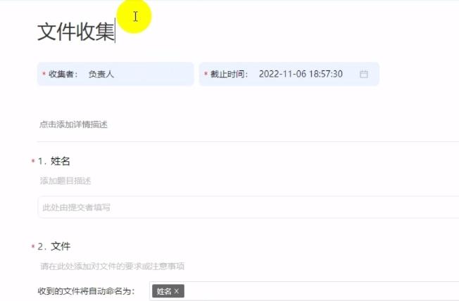 2、编辑收集信息,填写文件命名方式和截止日期