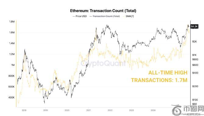 与此同时,智能合约调用量突破了每天1200万次,这是以往市场周期中从未见过的水平。