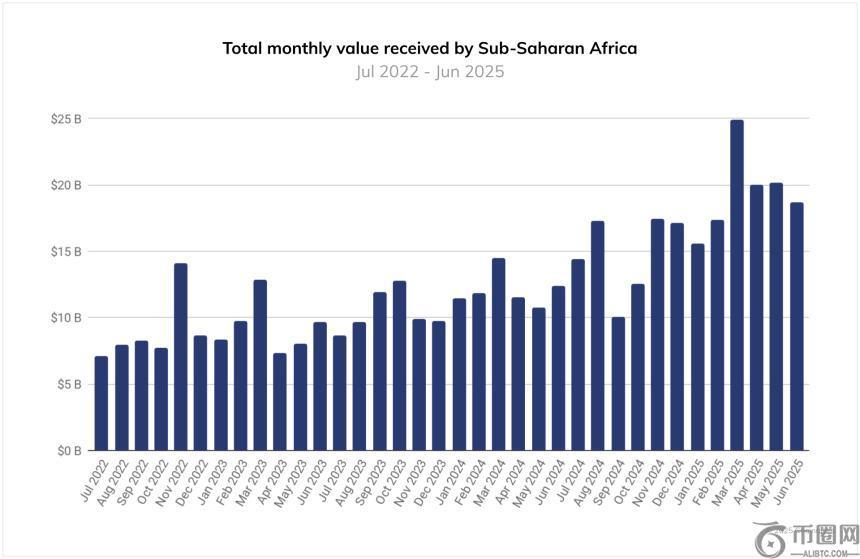 根据最新报道,链式分析显示,撒哈拉以南非洲地区 (SSA) 已成为全球增长第三快的加密货币市场。2024 年 7 月至 2025 年 6 月期间,链上交易额激增 52%,达到 2050 亿美元以上。主要驱动力是散户——利用加密货币进行日常交易、价值存储以及作为通货膨胀对冲的个人。