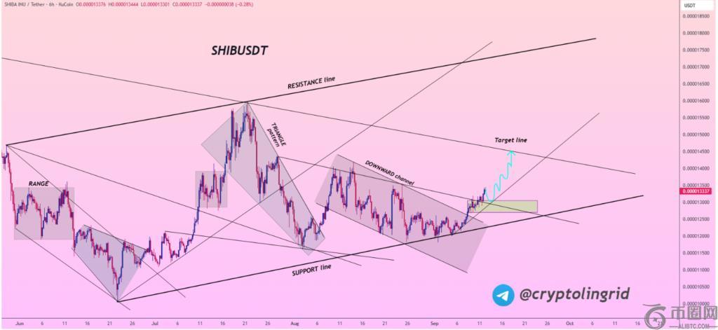 SHIB 突破下行通道后恢复强势,并在 0.00001300 美元区域附近保持支撑。