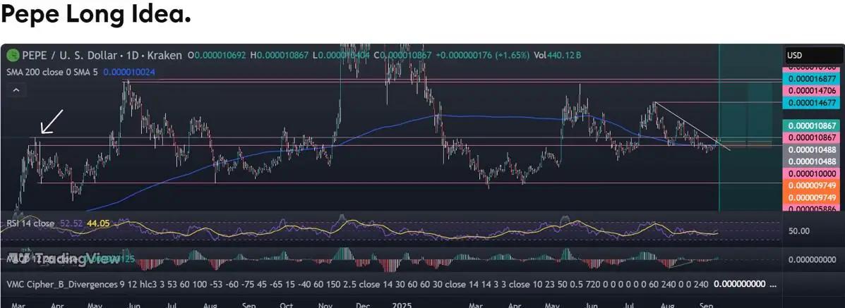 Pepe 持续提醒投资者为何模因币不容忽视。目前,Pepe 价格接近 0.000011 美元,即使在经历了艰难的一个月后,其周涨幅仍达 10%。市场观察人士预测,其价格可能跃升至 0.000013 美元,期间可能出现回调。风险显而易见,但机遇也同样不容忽视。Pepe 在快速的周期中蓬勃发展,其忠实的社区在其他代币衰退时仍保持着旺盛的需求。