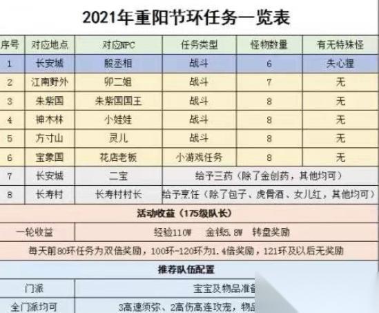 重阳节活动应该是最近半年来最良心的活动了,环任务简单路程短,隐藏任务奖励非常丰厚。不管是单开还是五开,都可以去蹭一蹭。要是想带队的话,没准还可以赚一笔带队费用。
