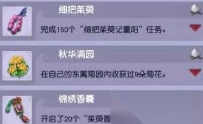这次重阳节成就非常简单,只要完成150个环任务、收获9朵菊花、开20个茱萸香囊即可。