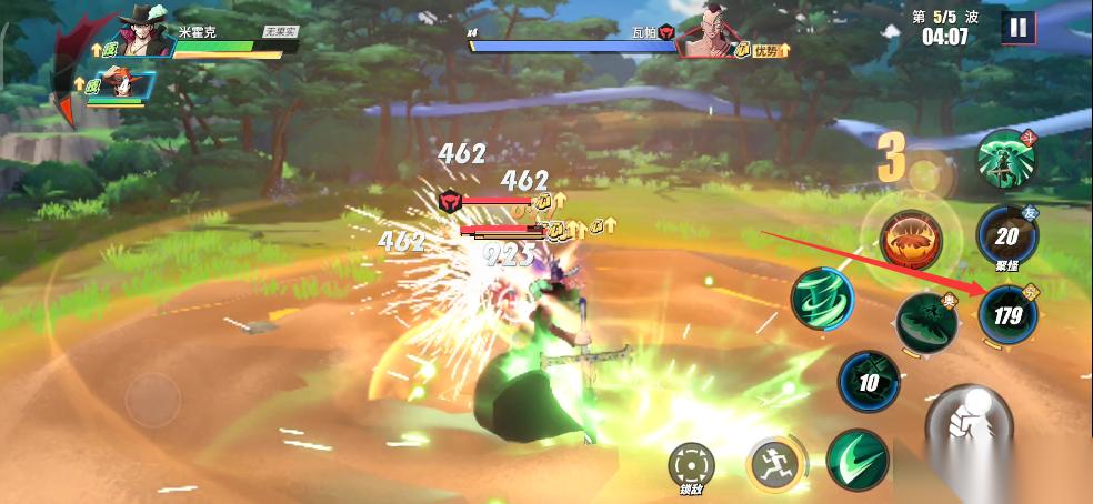 每一波登场时间间隔是10秒,前面3波大家先消耗并借此积攒能量。这里的奥义和究极奥义都先留着,用其他技能消耗。