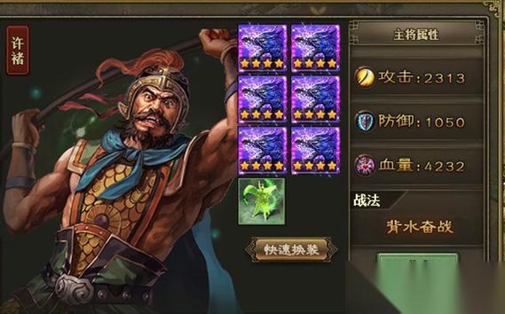许褚作为攻击型武将的首选,其主动技能可对敌方造成瞬间高额伤害,且精通攻城特性使其成为突破城门的核心力量。他的军团技能还能为全军提供攻击力加成,进一步强化五车阵型的爆发能力。貂蝉则侧重于团队增益,其主动技能可提升全军攻击力,虽然单次效果不如许褚显著,但持续加成能确保五车阵型的输出稳定性。貂蝉的内政特性可为城池提供资源增长支持,兼顾战斗与后勤。