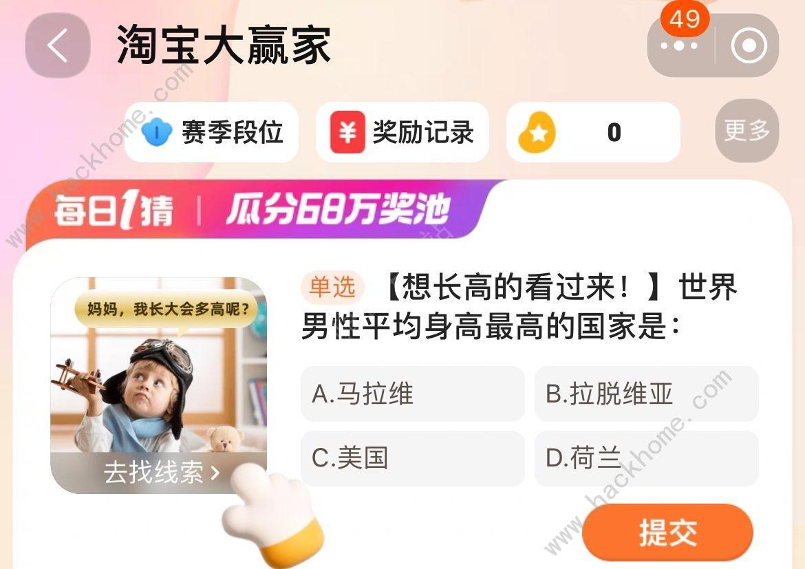 世界男性平均身高最高的国家是 2024淘宝大赢家今日答案1.3分享