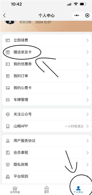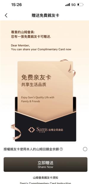 解绑成功后,去到山姆app,我的,找到并点击“赠送亲友卡”的选项,按照提示重新绑定其他亲友的账号。