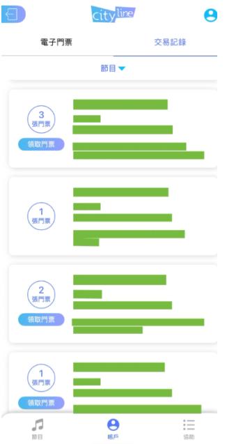 3. 进入交易记录标签页,可以看到购票列表。点一下左边的领取门票按钮;